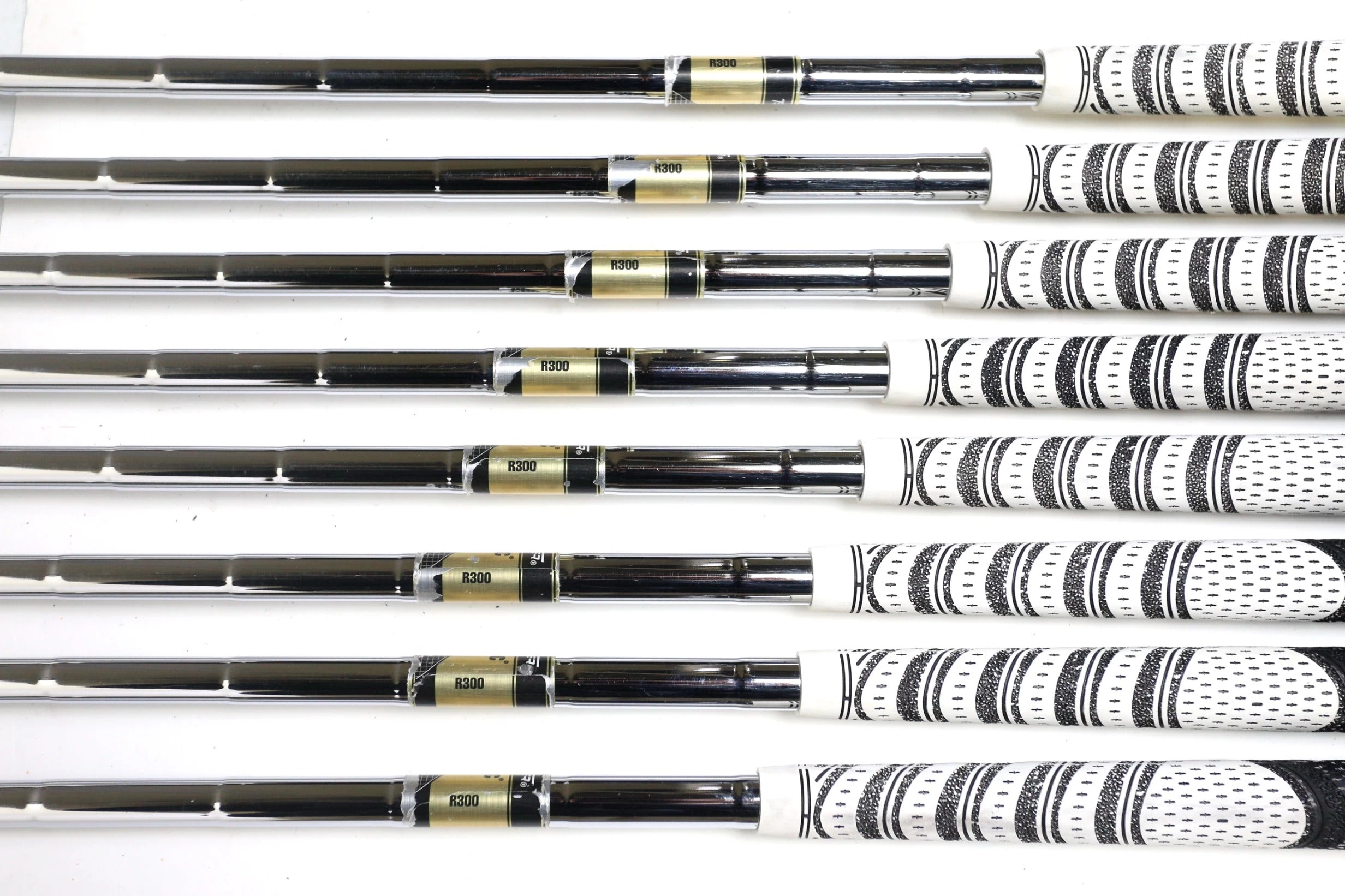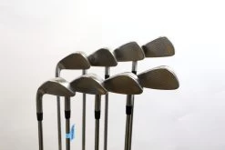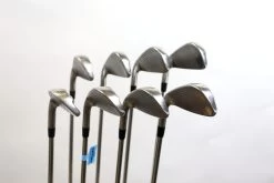 GOOD – This iron set is in good condition. There is average wear around the heads and on the faces of the clubs from regular use. There are very small markings and scratches along the shafts from normal use and storage. The grips are in good condition with some wear from regular use and storage. Please see pictures for more details.