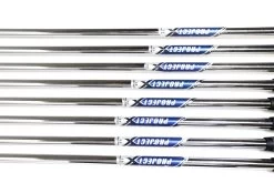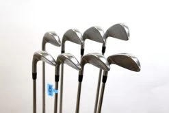 GOOD – This iron set is in good condition. There is average wear around the heads and on the faces of the clubs from regular use. There are very small markings and scratches along the shafts from normal use and storage. The grips are in good condition with some wear from regular use and storage. Please see pictures for more details.