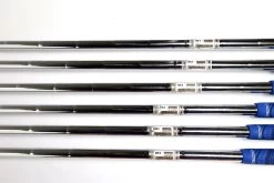 GOOD – This iron set is in good condition. There is average wear around the heads and on the faces of the clubs from regular use. There are very small markings and scratches along the shafts from normal use and storage. The grips are in good condition with some wear from regular use and storage. SET IS MISSING 7 IRON. Please see pictures for more details.