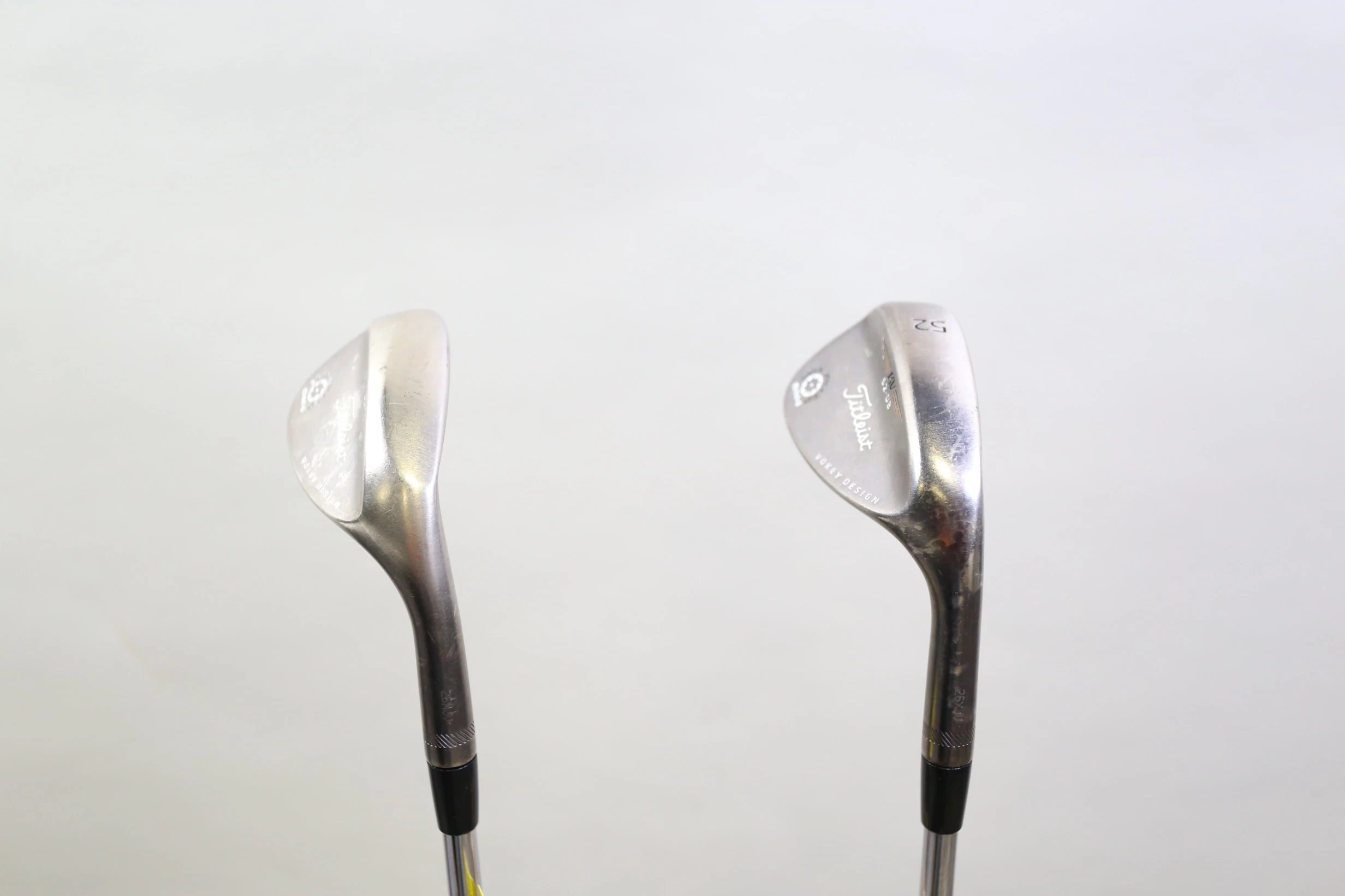 VALUE – This wedge set is in value condition. There is consistent wear around the heads and on the faces of the clubs from regular use. There are very small markings and scratches along the shafts from normal use and storage. The grips are in good condition with some wear from regular use and storage. Please see pictures for more details.**Gap wedge 52* loft 35 inches, Sand wedge 56* loft 35 inches**